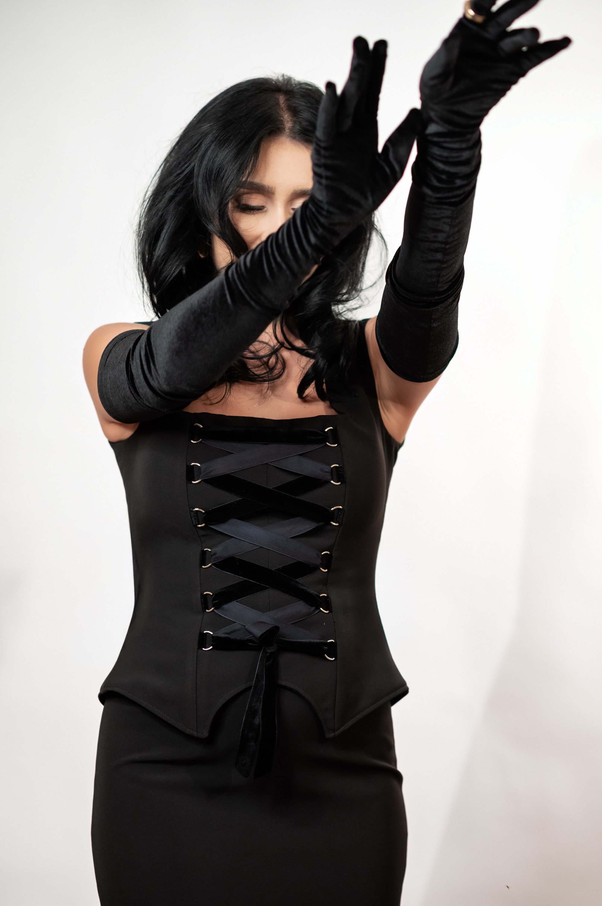 Corsetul Noir Lace-Up este o piesă couture sofisticată, realizată din material premium într-un negru intens. Designul său sculptat pune în valoare talia, iar șireturile decorative din catifea adaugă profunzime, textură și un aer seducător. Elegant și versatil, poate fi purtat la evenimente, seri speciale sau combinat cu piese clasice pentru un look modern și rafinat.